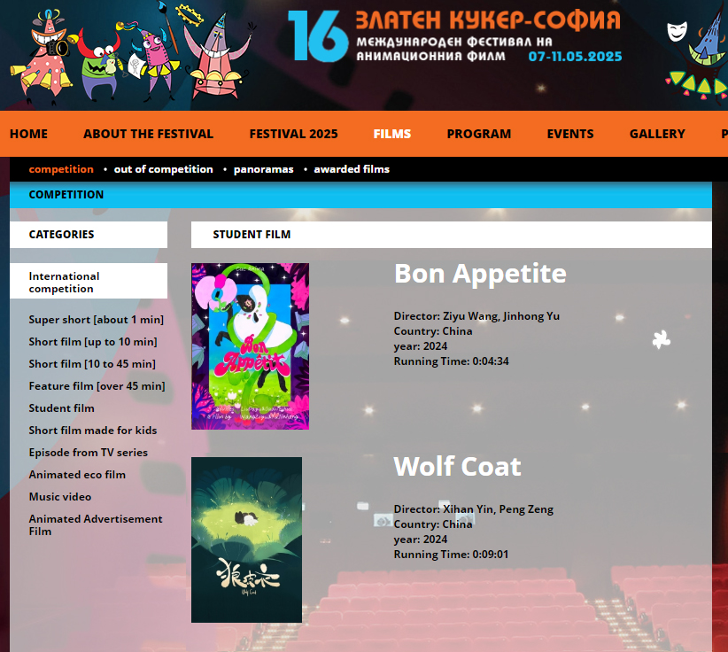 我校动画与数字艺术学院学生作品入围2025保加利亚索菲亚国际动画...
