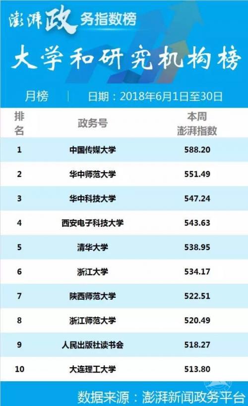 我校摘得澎湃政务指数大学和研究机构榜冠军