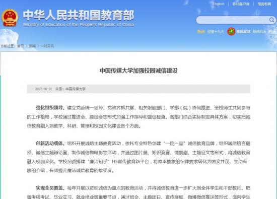教育部官网近日以“世界杯直播在线观看加强校园诚信建设”为题,从“强化组织领导”、“创新活动载体“、”实现全员覆盖”三个方面对我校开展诚信教育年活动,切实把诚信教育融入到教学、科研、管理和校园文化建设各个方...