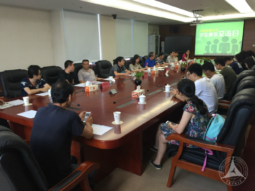 (通讯员:杨璇)6月15日下午14:00,本学期第三次学生事务交流日座谈会在2号楼918会议室举行。学生工作处、教务处、后勤管理处、保卫部、图书馆、计算机与网络中心、校医院等7个职能部门领导和老师及学生代表参会。...