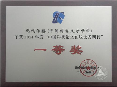 《现代传播》获2014“中国科技论文在线优秀期刊”一等奖