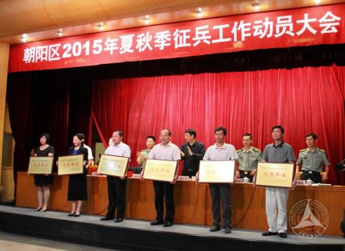 (通讯员 齐金贵)7月8日下午,朝阳区召开2015年夏秋季征兵工作动员会。会议总结了2014年征兵工作,部署了2015年征兵任务。区委常委、区武装部政委史连雪同志出席会议并讲话。 会上,出席会议的区领导为荣获2014年...