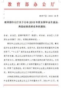 (通讯员 王芯蕊)近日,教育部办公厅下发了《关于公布2015年度全国毕业生就业典型经验高校名单的通知》,正式发布了2015年度全国毕业生就业典型经验50所高校名单。我校经过申报推荐、专家初选、第三方机构用人单位...