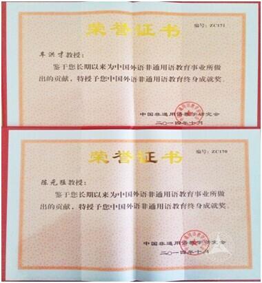 陈元猛、车洪才教授获中国外语非通用语教育终身成就奖