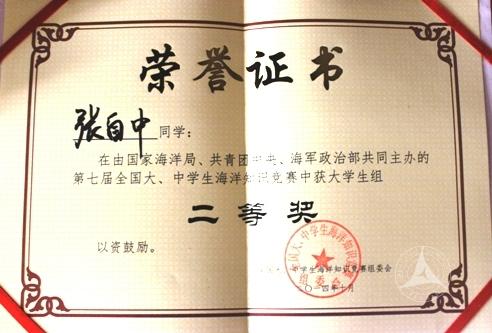 (通讯员 徐顺 王圣宇)11月7日,在全国海洋知识竞赛中,我校新闻传播学部2013级传播学(媒体市场调查与分析方向)张自中同学获得第七届全国大学生海洋知识竞赛二等奖。 本次海洋知识竞赛以“扬帆海上丝路 见证蓝...