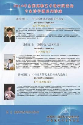 (通讯员 许一新) 近日,我校张育华教授作为教育部“高雅艺术进校园”活动的特聘专家再赴宁夏回族自治区讲学,分别为宁夏大学、宁夏医科大学、宁夏北方民族大学开设了题为“中国当下热播电视剧的美学风光”三场讲...