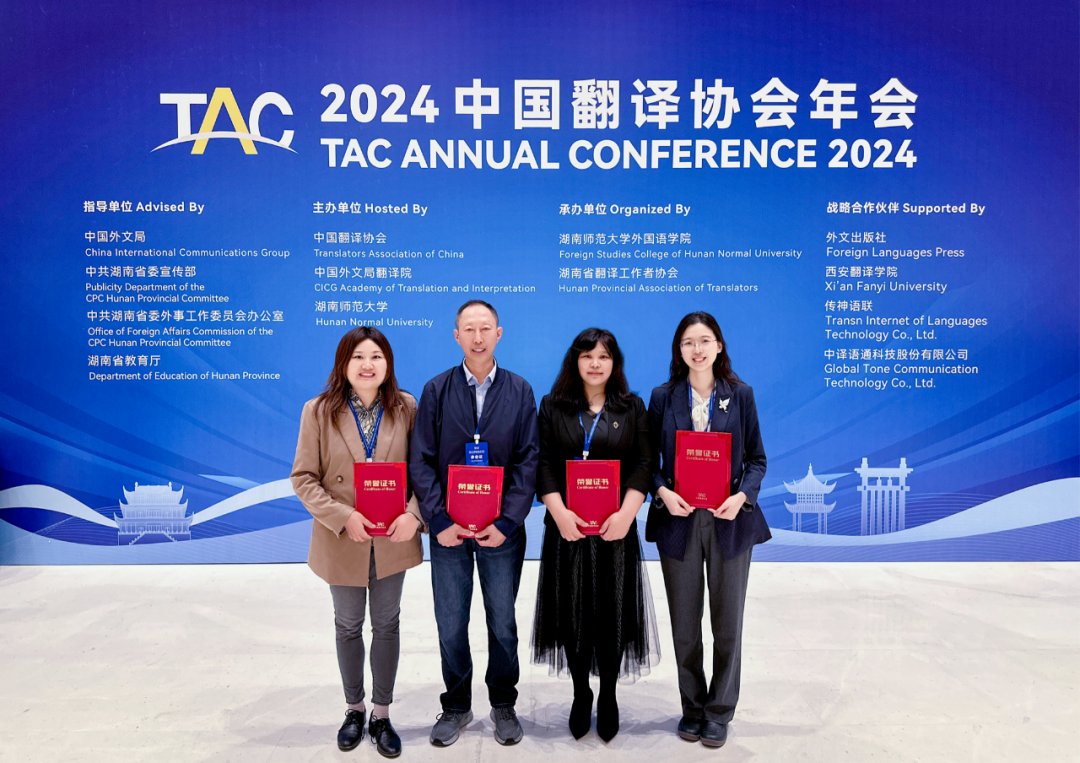 近日,由中国外文局指导、中国翻译协会主办的2024年中国翻译协会年会在湖南长沙开幕。会议对在翻译领域作出卓越贡献的专家学者进行了表彰,世界杯直播在线观看外国语言文化学院共有4名教师喜获殊荣。图片从左到右依次为金...