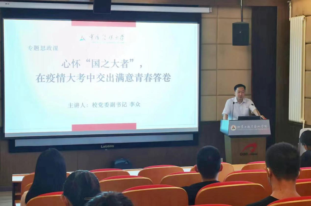 (通讯员 陈萌)6月13日下午,校党委副书记李众在动画与数字艺术学院报告厅讲授“心怀‘国之大者’,在疫情大考中交出满意青春答卷”专题思政课。各学院在校生学生代表、校园疫情防控学生党员先锋队代表、青年先锋队...