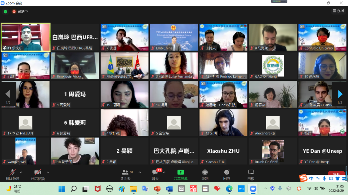 (通讯员 刘思楠)当地时间5月22日,由中国驻巴西大使馆主办、里约热内卢天主教大学孔子学院承办的第十五届“汉语桥”世界中学生比赛巴西预选赛(线上)成功落下帷幕。我校共建南大河州联邦大学孔子学院的Sarah More...