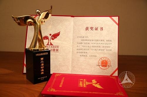 中国文化艺术政府奖第二届动漫奖最佳动漫教育机构奖证书