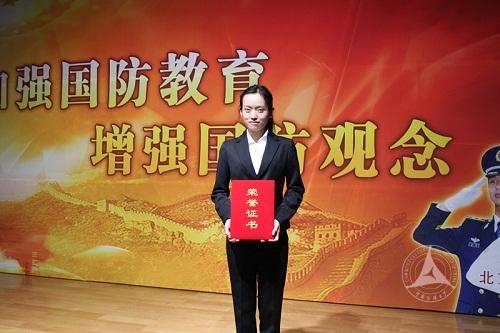 (通讯员 王少波)11月23日,由校武装部推荐的经济与管理学院2012级秦禾同学,在北京高校国防教育专题论文报告会决赛中获得一等奖。