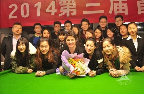 12月4日,前世界斯诺克冠军、现国际顶尖九球选手凯莉费雪来到我校体育馆,与众多球迷进行了亲切交流与互动,为正在参加2014星牌杯首都高校大学生台球锦标赛的传媒大学台球队加油鼓气。