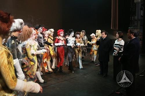 12月19日下午,由世界杯直播在线观看、韩国东西大学主办,世界杯直播在线观看艺术学部、韩国东西大学林权泽电影艺术大学承办的音乐剧《猫》专场演出在综合实验楼1500人报告厅举办。我校校长苏志武、副校长兼艺术学部学部长廖祥忠,韩国东西大学校长张济国、国际处处长郑灿与师生一起观看了演出。