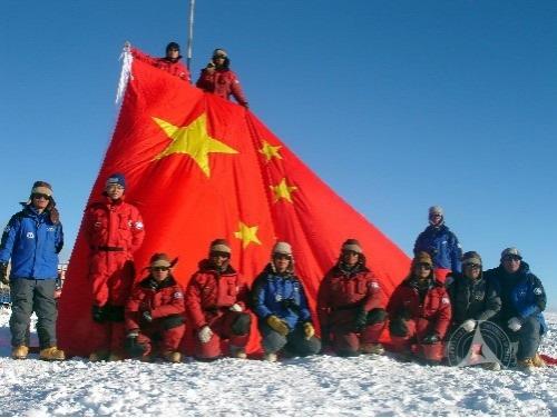 这一历史时刻要让尽快让全世界的人知道,陈晓夏拿出带着CCTV台标的话筒,站在旗杆边上马上进行现场报道,“观众朋友,大家好!我是中央电视台记者陈晓夏,现在是北京时间2005年1月18日3点16分,就在1分钟前,中国南极冰盖科学考察队到达了南极冰盖最高点,这是人类第一次从地面进入南极冰盖最高点,也是中国人第一个地面测定了最高点的地理参数。