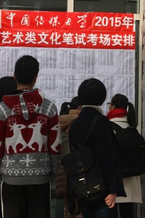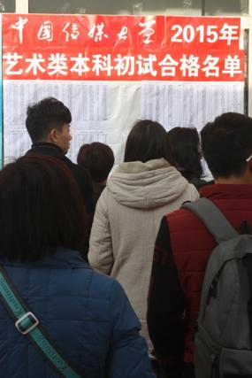 我校艺术类招生专业分为两部分:初复试合并专业、初复试分开专业。3月2日上午,我校2015年艺术类初复试分开专业:广播电视编导(文艺编导、综艺节目编导)、戏剧影视文学(动画编剧)、戏剧影视文学(影视编剧)等10个专业已经张榜公布初试合格考生名单,初试合格的考生将继续参加下一阶段的复试面试、笔试考试。