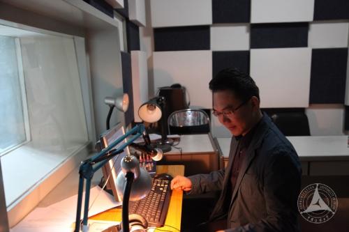 上午九点,郎永淳老师参观了中传电视台的演播室、语录室,并回到当年在母校上播音小课时的语录室,戴上耳机,重温校园时光。他感叹,现在学校给各位同学提供的环境非常专业,与他上学时已经发生了翻天覆地的变化。