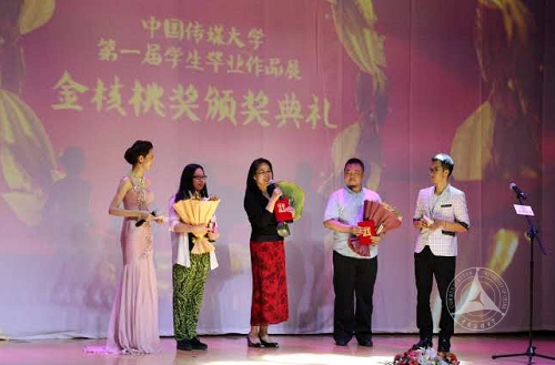 我校校长苏志武,电视节目主持人、我校教师崔永元,华夏电影发行有限责任公司常务副总经理黄群飞,北京摩天轮文化传播有限公司总经理,电影《同桌的你》总制片人杜扬,美国华纳兄弟公司中国地区电影制作及开发投资副总裁潘肖,影视演员富大龙、孙茜等出席典礼,并为获奖学生颁奖。