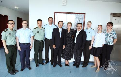 (通讯员 宫潇 摄影 石柱)6月17日上午,在国防部新闻发言人、新闻事务局副局长杨宇军大校陪同下,德军新闻传播高官代表团访问我校。受苏志武校长委托,校长助理王志代表学校会见了来访客人。代表团参观了我校传媒博物馆、动画与数字艺术学院和全国领导干部媒介素养培训基地第二教学基地蓝海电视台。我校培训学院负责人参加会见。