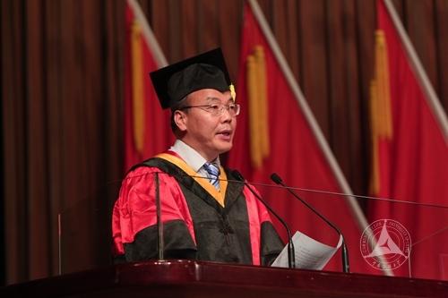 苏志武校长在毕业典礼上致辞。他首先代表学校向获得博士、硕士学位的毕业生们表示热烈的祝贺,向悉心指导和辛勤培养研究生的导师们表示亲切的问候,向关爱同学们成长和关心学校发展的各位家长和亲友表示衷心的感谢!