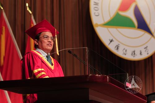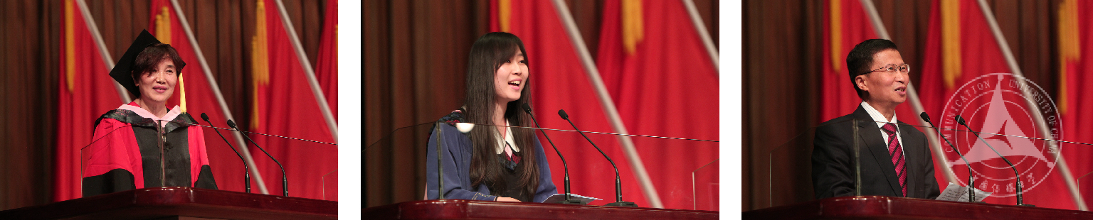苏志武校长深情寄语毕业生,希望同学们在未来的人生道路上,一要继续勤学深思,不断完善自我。无论是走上工作岗位,还是继续学习深造,都不能停滞、懈怠,要主动适应社会需求,及时更新知识储备,学思结合,知行统一。二是要学以致用,积极服务社会。积极投身时代浪潮,找准个人进步与国家发展的对接点,在奉献社会、服务人民的同时,努力实现自己的梦想。三是要领航传媒,续写母校的辉煌。牢记“立德、敬业、博学、竞先”的校训,践行“中正不倚、笃实不伪、卓荦不群”的精神,重视人格修养,坚守职业道德,力戒浮躁,脚踏实地,敢于担当。无论是做人,还是创业,都能发扬艰苦奋斗和吃苦耐劳的精神,尽情施展才华,书写快意人生。他最后表示,母校永远都是同学们的精神家园和港湾,祝福大家在实现梦想的征途上始终踏实、自信、健康、顺利!