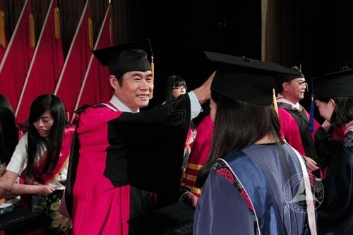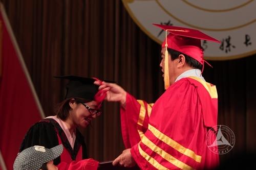 苏志武校长逐一为获得博士学位的毕业生拨穗、颁发学位证书,并与每一位毕业生合影留念。全体校领导,校学位评定委员会委员,2015届毕业研究生所属学部、学院的领导为获得硕士学位的毕业生颁发了学位证书。