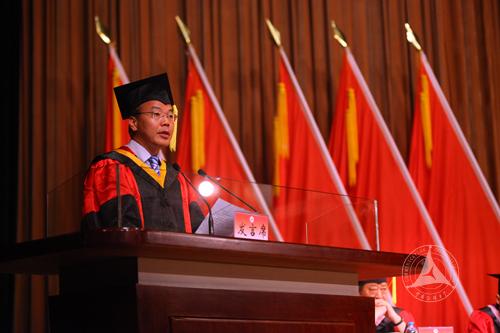 苏志武校长从“责任”、“事业”、“梦想”三个方面表达了对同学们的谆谆嘱托,一是要独立承担社会责任,以自己所学才干和掌握的能力去适应社会、回报社会。要懂得遵守社会公德和职业道德,立德修身,中正不倚。保持质朴、坚持信念,既要志存高远,又要脚踏实地、敢于担当,同时要懂得包容、懂得感恩。二是要熟悉经济新常态,拥抱互联网,将大学所学的专业知识与工作中不断更新的行业技能结合起来,坚持以笃实不伪的态度继续做好学问,博学敬业,进一步将自己打造为社会急需的复合型人才,争做行业的引领者而非追随者。三是无论在什么时刻,都能坚持梦想、坚守自信。要义无反顾、执着前行,只要矢志不渝、永不言败、敢为人先,就一定能够收获成功。母校期望你们建功立业、卓荦不群,也期望你们顽强拼搏、超越自我,胜不骄、败不馁,再小的梦想也值得尊重,再小的进步也理应赢得掌声!
