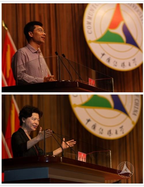 播音主持艺术学院卢静教授、理工学部信息工程学院殷复莲副教授作为教师代表分别发言,表达对即将离开母校的同学们的深深祝福和真诚嘱托,希望同学们能够树立正确的人生观和价值观,永远做正直、善良,有责任感和担当的人;拥有健康的身体和心态,做乐观积极、充满正能量的人;懂得团结、善于协作;做孝顺父母的人。