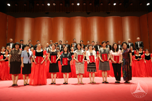 作为协办高校,我校党委高度重视,校工会认真落实这次汇演活动的报名及组织工作,选派我校播音主持艺术学院研究生王晨雨、贺琳担任活动的主持人。为展示高水平的演出风采,我校女教授合唱团与教授合唱团共同组成了参演队伍,大家在一个月时间里,克服困难,积极排练。演出开始后,我校教授合唱团首先登台亮相,70名教职工深情演唱了《黄水谣》、《保卫黄河》两首歌曲,充分展示了我校教职工的昂扬向上的精神面貌,为学校争得了荣誉,也得到台下的热烈掌声。