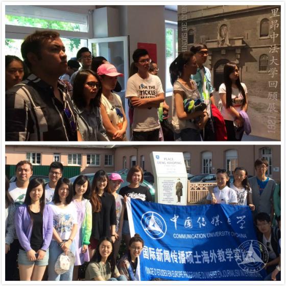 “国家意识,国际视野”是国际新闻传播人才培养的核心,深入了解中国的历史,才能更好地报道中国。教学实践团师生在法国和比利时进行了爱国主义历史教育,以“红色之旅”为主题进行了参观、采访和拍摄:包括2014年习主席访法时曾经参观过的里昂中法大学旧址;邓小平、陈毅等曾经勤工俭学的小城蒙塔日;周恩来曾经居住过的巴黎的旅馆;《共产党宣言》的起草地比利时布鲁塞尔白天鹅饭店等。在里昂中法大学展览馆,讲解员为教学实践团师生介绍了中法大学的历史,并介绍了习主席访法后成立的新中法大学和中国-里昂关系促进中心的最新情况;在蒙塔日,实践团师生到邓小平曾经工作过的橡胶工厂、陈毅、蔡和森等曾经就读的男子公学等地参观,学习老一辈无产阶级革命家“勤以做工,俭以求学”的奋斗精神。实践团师生还在去年该市为纪念中法建交五十周年刚建成的邓小平广场合影留念。