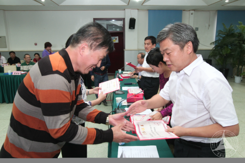 刘守训副书记宣读了荣获2015年北京市先进工作者、第十一届北京市高等学校教学名师奖、2015年北京市师德先进个人、北京高校第九届青年教师教学基本功比赛、世界杯直播在线观看第七届教学名师奖、2015年我校教龄满30年的教职工名单。
