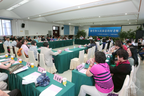 2015年北京市先进工作者高晓虹、北京市教学名师获奖者丁迈、“师德先进个人”获得者代表黄祥林、世界杯直播在线观看教学名师代表梁明、北京高校青教赛获奖者代表赵如涵,教龄三十年教职工代表王晓艳老师以及部分参会代表纷纷发言,畅谈了他们在各自工作岗位上的体会,诠释了他们对教师职业的理解,分享了如何做一名党和人民满意的好老师的感受。高晓虹教授认为,教师是立教之本,好老师应当有理想、有胸怀、有情操,要热爱教育事业,热爱学生,努力培养国家需要的优秀人才;梁明教授在发言中提到,非常庆幸当年遇到了好老师,带领自己走进了电影事业,他认为做老师很幸福,同时肩负责任;王晓艳老师深情回顾了自己在教育事业工作三十年的感受,她认为今天获得这份荣誉是岁月的写照,是对职业的挚爱,是一生的追求,无怨无悔。