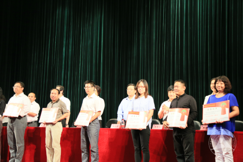 (通讯员 曹坤)9月16日,北京市教育工会隆重举行北京高校第九届青年教师教学基本功比赛表彰大会。北京市委教育工委副书记韩俊兰、北京市教委委员黄侃、北京市总工会党组成员、副主席张青山等领导出席会议。我校青年教师在此次比赛中取得佳绩,新闻传播学部教师赵如涵、于然,文法学部教师刁生虎、艺术学部张林分别上台接受表彰。
