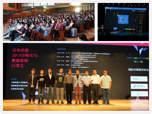 (通讯员 宋奇 摄影 杨明昊)由国际传媒教育学院与财新可视化实验室、百度新闻实验室联合主办的“京华论道——2015可视化与数据新闻论坛”在综合实验楼1500人报告厅举行,论坛以其专业、深度和前沿赢得业界广泛赞许。作为2015系列学术活动的一部分,论坛邀请了来自北京大学、财新传媒、百度、澎湃等学界和业界嘉宾进行高水平跨界交流活动,展示了可视化应用和数据新闻的独特魅力,并共同探讨未来新闻和媒体形态的发展趋势。继今年5月数据新闻奖学术沙龙,国际传媒教育学院在数据新闻领域主办了一系列学术活动,新华网、人民网、中国社会科学网等进行了系列报道。这也是国际传媒教育学院“传媒国际公民”培养计划中,业界前沿教学的一部分。