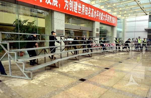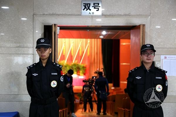 在报告厅内外,安保人员全程站岗,尽职尽责。