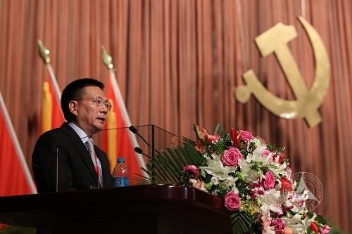 他号召全校党员和师生员工紧密团结在以习近平同志为总书记的党中央周围,以邓小平理论、“三个代表”重要思想、科学发展观为指导,全面贯彻落实党的十八大、十八届三中、四中全会精神,全面贯彻落实《国家中长期教育改革和发展规划纲要(2010-2020年)》,全面提升创新能力,推动优势学科跻身世界一流,为把我校建设成为世界知名高水平传媒大学而奋斗!