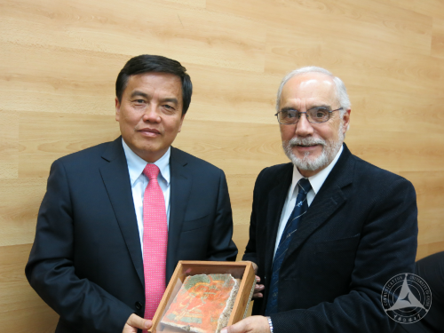 苏志武校长与墨西哥国立自治大学副校长阿曼多·落迪吉安尼互赠礼物