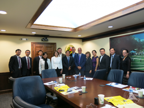 离开乔治城大学,代表团来到了马里兰大学,马里兰大学副校长罗斯·勒温、国际事务办公室和传播学院的负责人接待了代表团一行。为提升教学及管理水平,我校曾组织两批人员赴马里兰大学进行培训,苏校长代表学校对此表示感谢。会谈过程中,代表团了解到马里兰大学传播学院具有很强的师资力量,其院长伊丽莎白·托斯教授是美国传播教育者联合会主席、副院长曾担任美国传播学会副会长。苏校长表示,欢迎传播学的一些国际会议到世界杯直播在线观看举办。双方还就加入我校发起的传媒高等教育国际联盟和共同招收同声传译专业学生达成了合作意向。