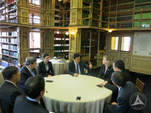 21日上午,代表团一行访问了位于华盛顿的乔治城大学,乔治城大学的公共关系硕士项目在美国排名第一,美国前总统克林顿曾在此就读,美国历任多位总统都到该校演讲。此前,我校与乔治城大学在新闻发言人培训和干部继续教育方面已经有过接触。乔治城大学教务长兼继续教育学院院长凯利·欧特博士和全球教育研究院詹姆士·帕伦院长会见了代表团一行。会谈期间,两校在联合开展政府新闻发言人培训及外交与公共关系EMBA人才培养方面达成了合作意向。