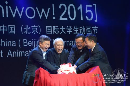 四代院长共同切开象征动画节十周年的纪念蛋糕