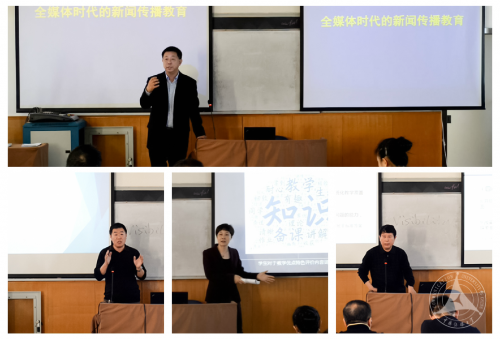 在经验介绍环节,专程应邀与会的首都师范大学博士生导师、课程与教学论专家邢红军教授就如何获得令学生满意的课堂效果,与新闻学院全体教师进行了交流;我校广电研究中心副研究员、“北京高校第八届青年教师教学基本功比赛”二等奖和“最受学生欢迎奖”双料得主张磊和新闻学院副教授倪桓也分别示范了课堂教学心得。
