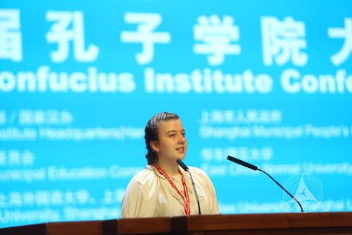在大会开幕式的发言嘉宾中,来自我校贝尔格莱德孔子学院与贝尔格莱德语言中学共建汉语教学点的中学生苏丽娜,操着一口流利的汉语讲述她与汉语的故事,给全场与会代表留下了深刻印象。她发言后,教育部袁贵仁部长等领导与她亲切握手。苏丽娜曾获得第八届“汉语桥”世界中学生作文比赛一等奖,还曾到中国考察时参观了我校。