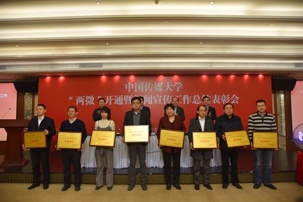 在开通仪式后举行的新闻宣传工作总结表彰会上,袁军副校长宣读了学校对2015年度新闻宣传先进单位、优秀通讯员的表彰决定,并宣布网络文化工作室首批授牌名单及专家评论员名单。其中,艺术学部等8个单位荣获“新闻宣传工作先进单位”称号;曹坤等10位教师荣获“新闻宣传工作优秀通讯员”称号;荆学民等10人聘请担任专家评论员;传媒团英等3个微信公众账号被授予我校首批“大学生网络文化工作室”。