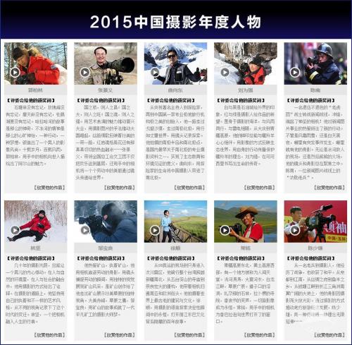 2015中国摄影年度人物评选以“致敬时代的平凡动力”为主题,由主办单位组成专家提名委员会,邀请30个省、市(自治区)有影响力的共28名摄影人进行提名,共收到了280名候选人,最后评选出10位年度人物。