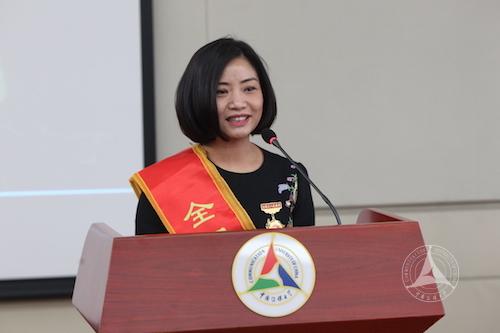 李凌超女士以《超越自我 追梦蓝天》为题,分享了她作为女飞行员的成长经历和感受。她表示:“我把蓝天作为实现梦想的舞台,最好的青春年华都给了我挚爱的部队、我最钟爱的飞行事业。‘超越自我、坚韧不拔、敢于牺牲、甘于奉献’,这是我们的女飞精神,我会和姐妹们一起接力传承、发扬光大。”