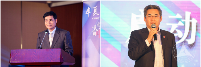 高等教育学会秘书长康凯(右)、我校党委书记陈文申讲话