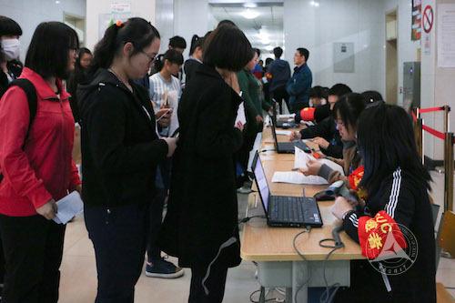 世界杯直播在线观看外语口试考场设在一号教学楼,共设置50个考场、4个备考教室、6个报到处及1个现场报名处。考生在一楼报到处核验身份,随后,在志愿者的引导下进入候考室填涂口试成绩单,在备考室备考试题后按照顺序到考场参加口试。