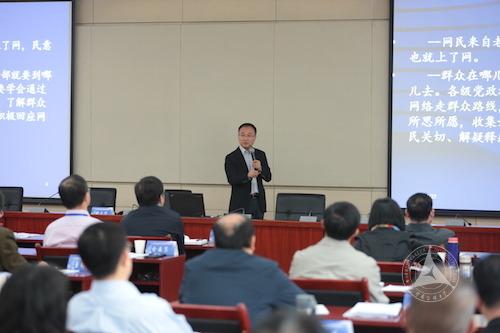 学员们都对本次培训充满期待,他们谈到,办好人民满意的教育,既要办实事,更要说实话,要学会与媒体坦诚交流、真诚互动,这是任务、更是职责,提高履行与媒体和公众交流职责的能力,应该是教育系统每位官员的追求。培训班第一讲由我校副校长胡正荣围绕《媒体融合格局下的政府新闻》这一主题讲授。这不仅仅是一个普通的课堂,而是教育官员们为更好全面履职而进行的不断努力,办好人民满意的教育,也要更多真诚、及时、有智慧的沟通。