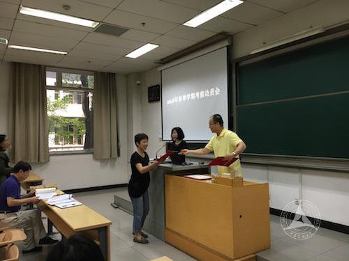 会上,胡正荣副校长颁发了上一学期“优秀考试组织奖”及“优秀考务工作者奖(个人奖)”。其中获得“优秀考试组织奖”的单位有:理工学部、外国语学院、马克思主义学院、新闻传播学部、计算机与网络中心、体育部等单位;获得“优秀考务工作者奖”的个人有:理工学部齐建涛老师、计算机与网络中心杨鸣燕老师、外国语学院蔡易力老师、艺术学部张兰老师、经管学部郑华老师、马克思主义学院张寒老师。