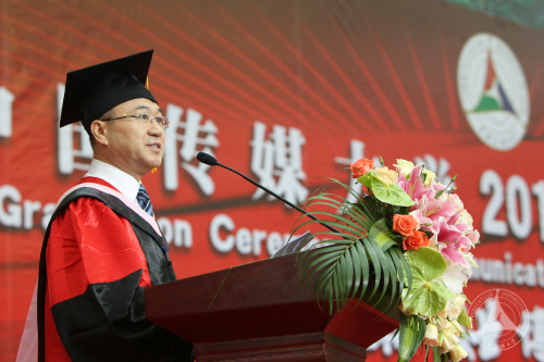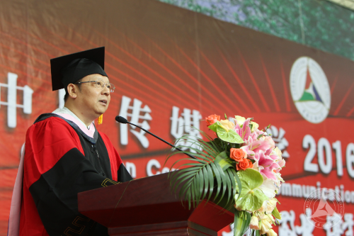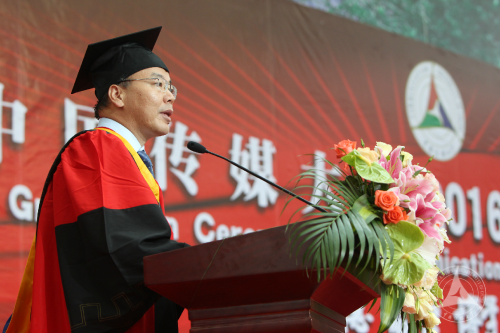 陈文申书记表示,今天的毕业典礼之后,同学们将各奔东西,从校园走向社会,开始书写一个大写的人生,在这惜别之时,他有三句话送给各位同学:作为传媒学子,应该坚守“理想信念、责任担当”;面对社会,应该培育“隔离的智慧、超越的心灵”;面对人生,请相信“但凡经过,总有收获”。