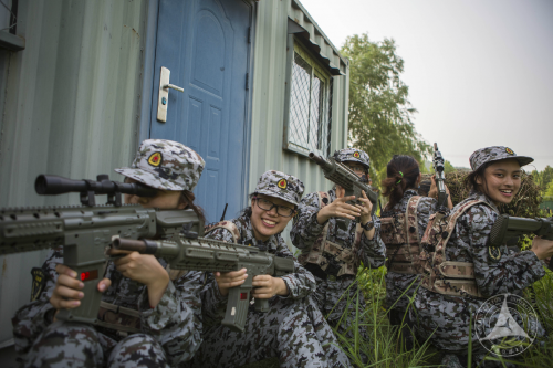 近日,军训团各连还组织开展了“真人CS”训练项目,为我校军训史上首次。由于天气炎热,此项目作为个人自选科目,尽管如此,同学们还是表现出很高的热情,一半以上的同学披挂上阵,开展了对攻,取胜一方无不欢呼雀跃。
